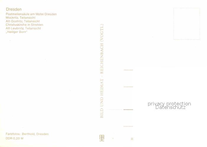 72631893 DRESDEN Elbe Postmeilensaeule am Motel-Dresden Mockritz Gostritz Strehlen Leucknitz postalisch nicht gelaufen Erhaltung siehe scans [LiesaD40] KatCode: 11110014262000
