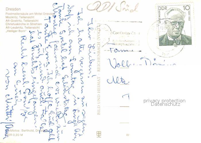 72646267 alte Postkarte DRESDEN Elbe Postmeilensaeule Mockritz Alt Gostritz Christuskirche Strehlen Alt Leubnitz Heiliger Born postalisch gelaufen Erhaltung siehe scans [WerneD78] KatCode: 11110014262000