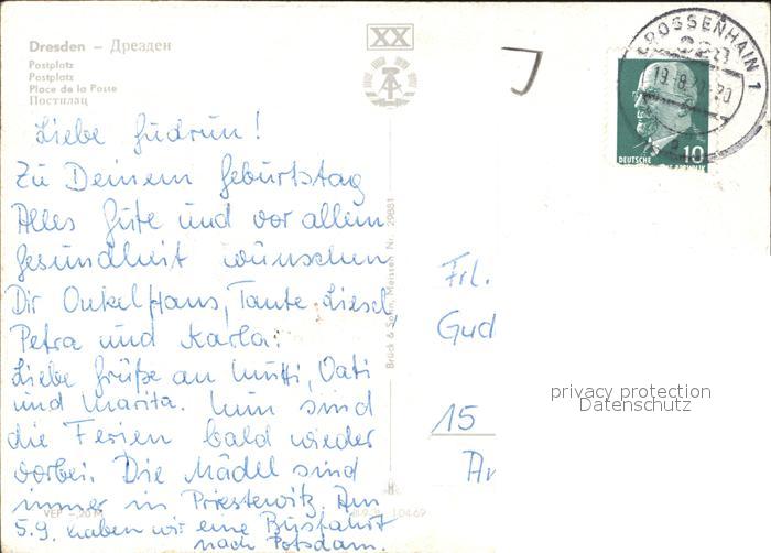 72264696 alte Postkarte DRESDEN Elbe Postplatz postalisch gelaufen Erhaltung siehe scans KatCode: 11110014262000