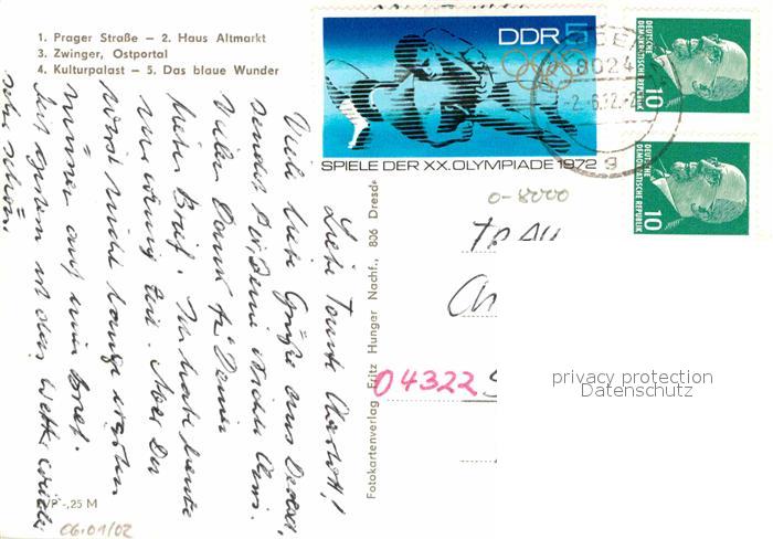 72917930 alte Postkarte DRESDEN Elbe Prager Str Haus Altmarkt Zwinger Ostportal Kulturpalast Das blaue Wunder postalisch gelaufen Erhaltung siehe scans [WerneD78] KatCode: 11110014262000