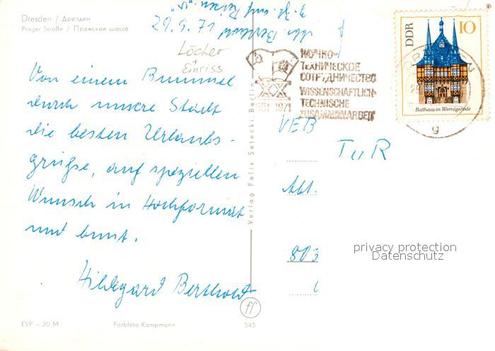 72941103 alte Postkarte DRESDEN Elbe Prager Strasse postalisch gelaufen Erhaltung siehe scans [LiesaD40] KatCode: 11110014262000