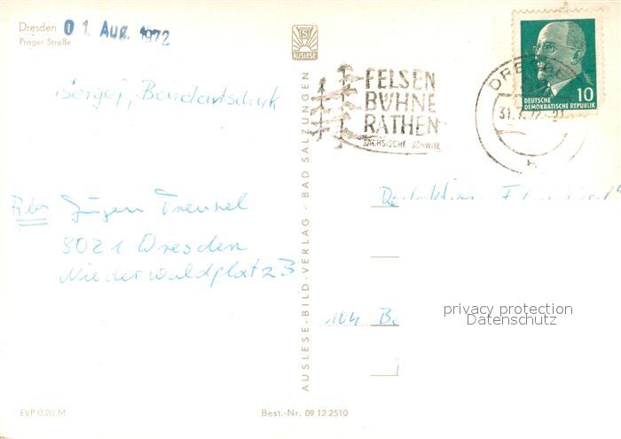 73653439 DRESDEN Elbe Prager Strasse postalisch gelaufen Erhaltung siehe scans [WerneD78] alte Postkarte Wern Katcode 11110014262000