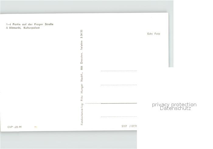 71930442 DRESDEN Elbe Prager Strasse Altmarkt Kulturpalast postalisch nicht gelaufen Erhaltung siehe scans KatCode: 11110014262000
