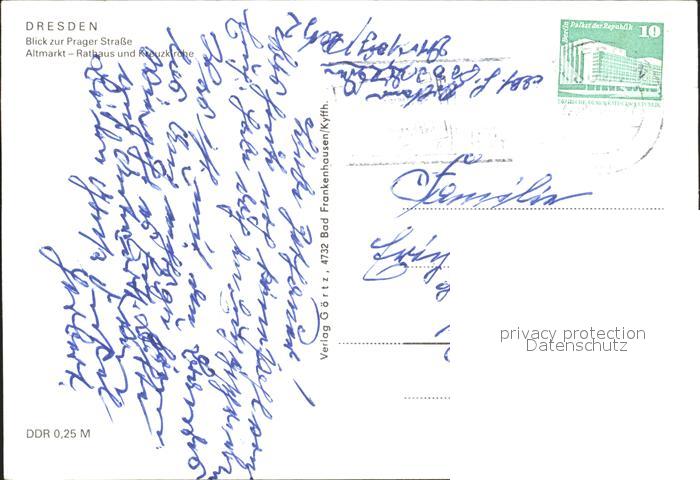 72368465 alte Postkarte DRESDEN Elbe Prager Strasse Altmarkt Rathaus Kreuzkirche postalisch gelaufen Erhaltung siehe scans KatCode: 11110014262000