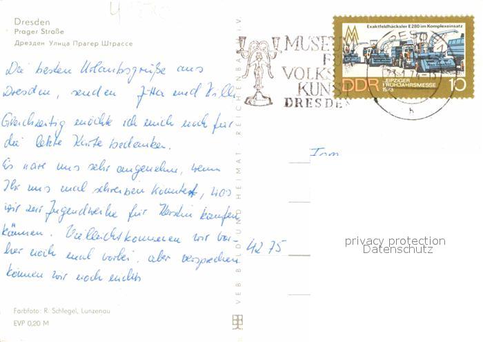 72918557 alte Postkarte DRESDEN Elbe Prager Strasse Interhotel postalisch gelaufen Erhaltung siehe scans [FriedD77] KatCode: 11110014262000