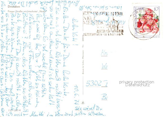 73063192 alte Postkarte DRESDEN Elbe Prager Strasse Interhotel Newa postalisch gelaufen Erhaltung siehe scans [FriedD77] KatCode: 11110014262000
