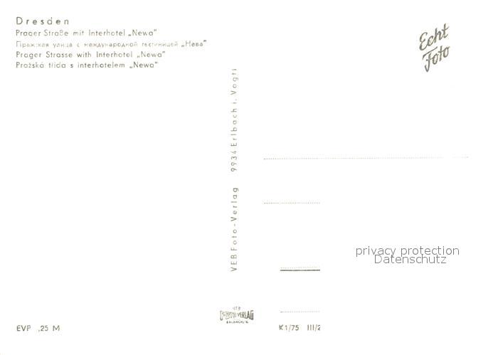 73134389 DRESDEN Elbe Prager Strasse Interhotel Newa Wasserspiele Nachtaufnahme postalisch nicht gelaufen Erhaltung siehe scans [FriedD77] KatCode: 11110014262000
