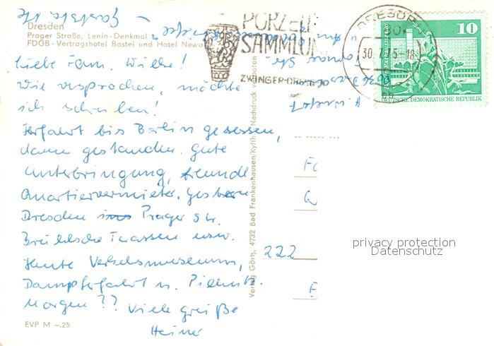 73101371 alte Postkarte DRESDEN Elbe Prager Strasse Lenin-Denkmal Vertragshotel Bastei und Hotel Newa postalisch gelaufen Erhaltung siehe scans [LiesaD40] KatCode: 11110014262000