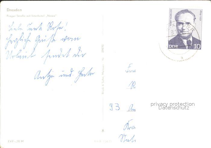 72382990 alte Postkarte DRESDEN Elbe Prager Strasse mit Interhotel Newa postalisch gelaufen Erhaltung siehe scans KatCode: 11110014262000