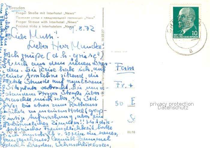 73739177 DRESDEN Elbe Prager Strasse mit Interhotel Newa postalisch gelaufen Erhaltung siehe scans [FriedD77] alte Postkarte Frie Katcode 11110014262000