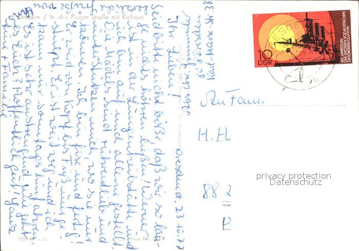72299213 alte Postkarte DRESDEN Elbe Prager Strasse mit Rathaus postalisch gelaufen Erhaltung siehe scans KatCode: 11110014262000