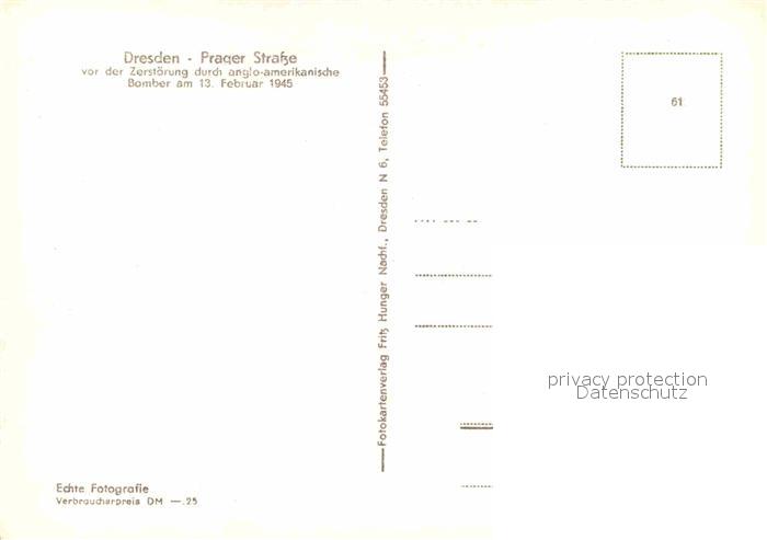 72639512 DRESDEN Elbe Prager Strasse vor der Zerstoerung 1945 postalisch nicht gelaufen Erhaltung siehe scans [FriedD77] KatCode: 11110014262000