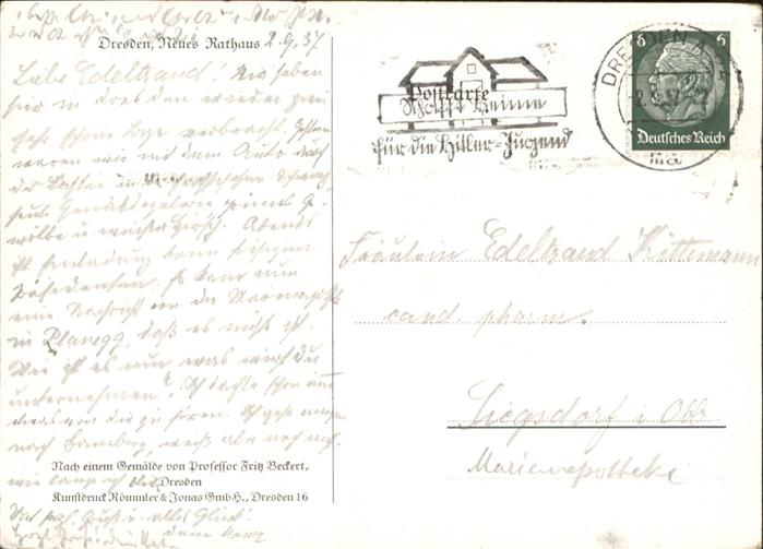40989837 DRESDEN Elbe Rathaus postalisch gelaufen Alte Ansichtskarte Postkarte alte Postkarte Katcode 11110014262000