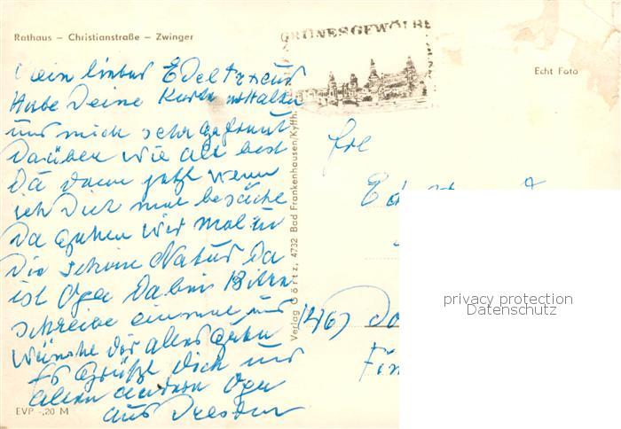 73832733 Dresden Elbe Rathaus Christianstrasse Zwinger postalisch gelaufen Erhaltung siehe scans [FriedD77] alte Postkarte Frie Katcode 11110014262000