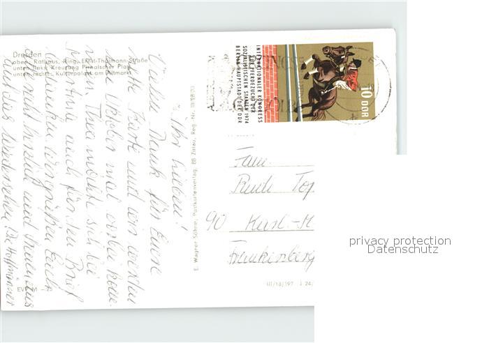 72384108 alte Postkarte DRESDEN Elbe Rathaus Ernst Thaelmann-Strasse postalisch gelaufen Erhaltung siehe scans KatCode: 11110014262000