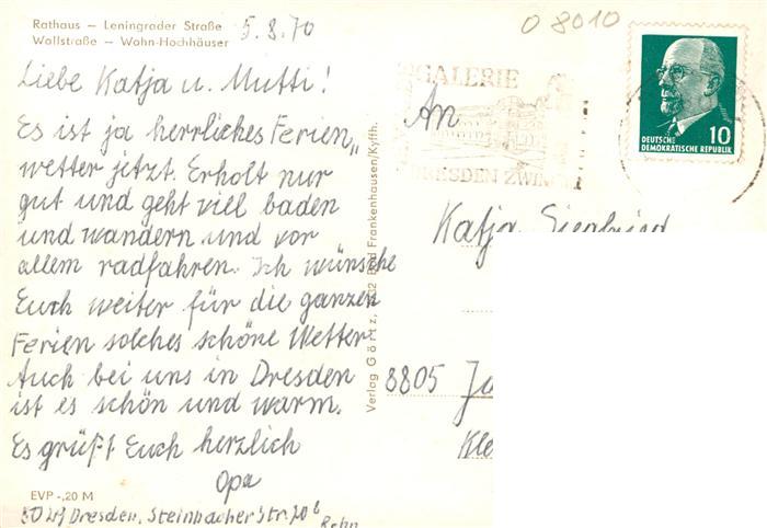 73918986 Dresden Elbe Rathaus Leningrader Strasse Wallstrasse Wohn Hochhaeuser postalisch gelaufen Erhaltung siehe scans [WerneD78] alte Postkarte Wern Katcode 11110014262000