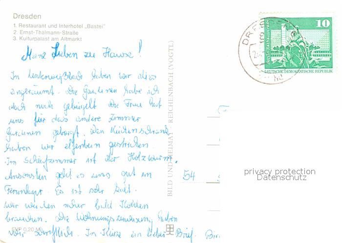 72926034 alte Postkarte DRESDEN Elbe Restaurant und Interhotel Bastei Thaelmann Str Kulturpalast Altmarkt postalisch gelaufen Erhaltung siehe scans [WerneD78] KatCode: 11110014262000