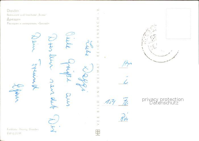 72022065 alte Postkarte DRESDEN Elbe Restaurant und Interhotel postalisch gelaufen Erhaltung siehe scans KatCode: 11110014262000