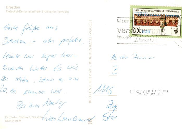 73127333 alte Postkarte DRESDEN Elbe Rietschel Denkmal Bueste Bruehlsche Terrasse postalisch gelaufen Erhaltung siehe scans [FriedD77] KatCode: 11110014262000