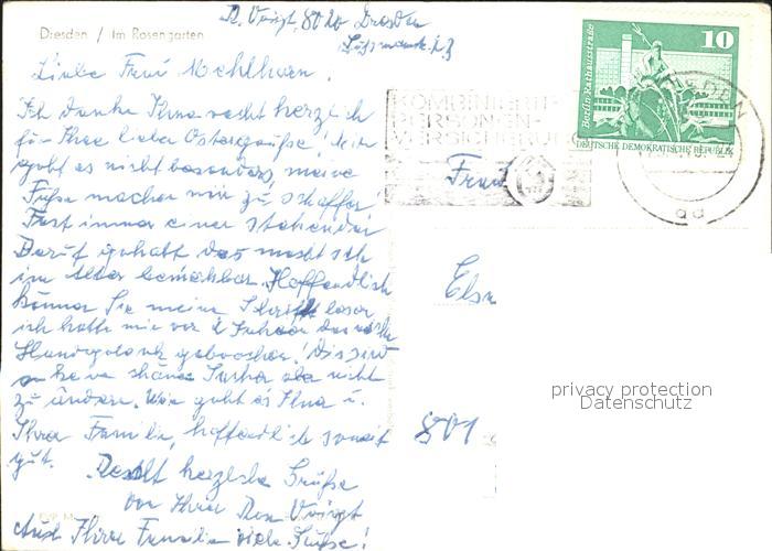 72339410 alte Postkarte DRESDEN Elbe Rosengarten postalisch gelaufen Erhaltung siehe scans KatCode: 11110014262000