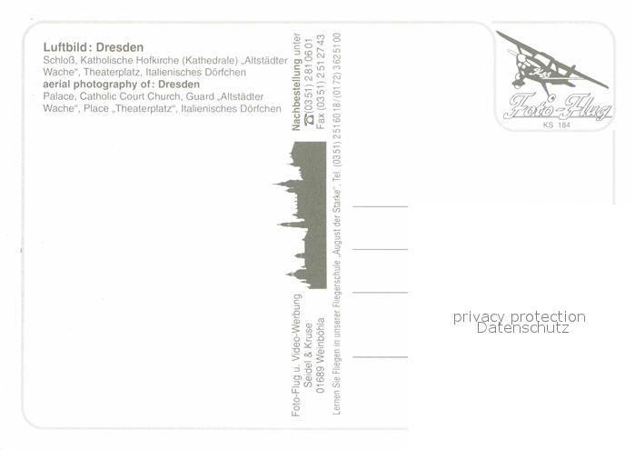72891156 DRESDEN Elbe Schloss Kath Hofkirche Altstaedter Wache Theaterplatz Fliegeraufnahme postalisch nicht gelaufen Erhaltung siehe scans [WerneD78] KatCode: 11110014262000