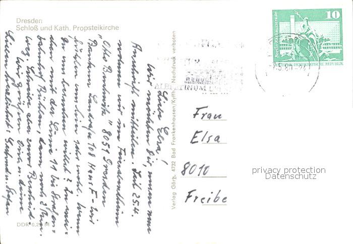 72339409 alte Postkarte DRESDEN Elbe Schloss Katholische Propsteikirche postalisch gelaufen Erhaltung siehe scans KatCode: 11110014262000