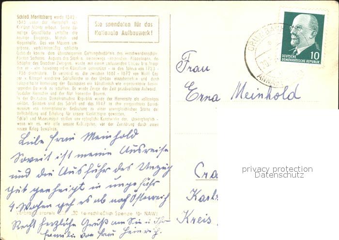 72412134 alte Postkarte DRESDEN Elbe Schloss Moritzburg postalisch gelaufen Erhaltung siehe scans KatCode: 11110014262000
