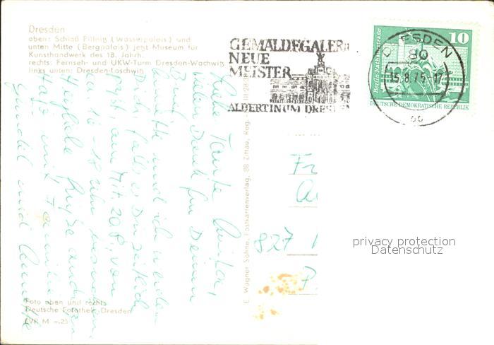 72342450 alte Postkarte DRESDEN Elbe Schloss Pillnitz Bergpalais Museum Fernsehturm Loschwitz postalisch gelaufen Erhaltung siehe scans KatCode: 11110014262000