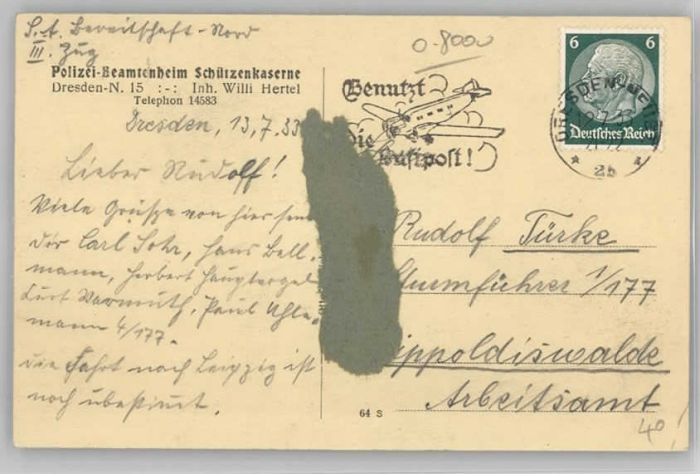 40258263 DRESDEN Elbe Schuetzenkaserne Lebensmittelhaus Billard-Zimmer Sport-Zimmer Polizei-Beamtenheim postalisch gelaufen Alte Ansichtskarte Postkarte alte Postkarte Katcode 11110014262000