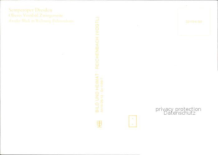 72324125 DRESDEN Elbe Semperoper Oberes Vestibuel Zwingerseite postalisch nicht gelaufen Erhaltung siehe scans KatCode: 11110014262000