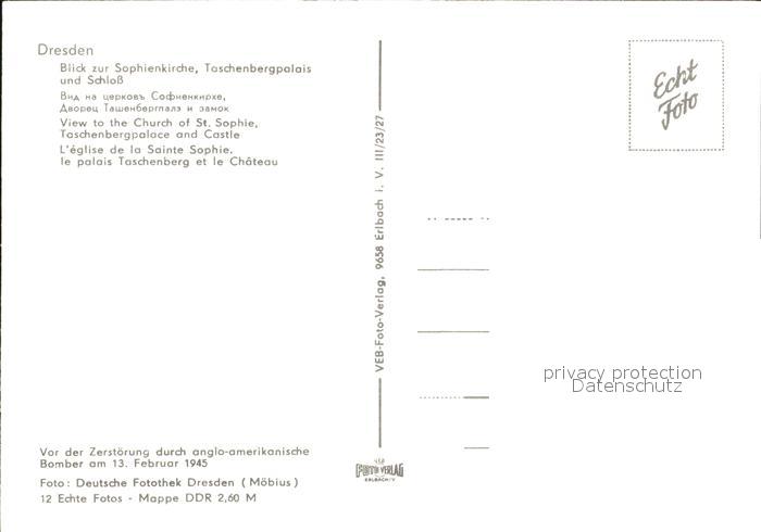 72396638 DRESDEN Elbe Sophienkirche Taschenbergpalais Schloss postalisch nicht gelaufen Erhaltung siehe scans KatCode: 11110014262000
