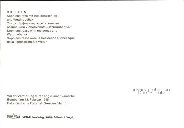 72396636 DRESDEN Elbe Sophienstrasse Residenzschloss Wettinobelisk postalisch nicht gelaufen Erhaltung siehe scans KatCode: 11110014262000