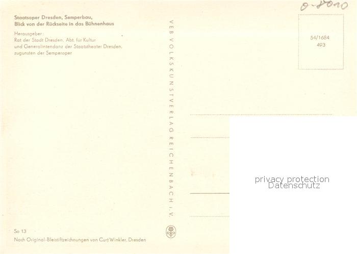 43351217 DRESDEN Elbe Staatsoper Semperbau Buehnenhaus Kuenstlerkarte postalisch nicht gelaufen Erhaltung siehe scans [KathaD81] Kath Katcode 11110014262000