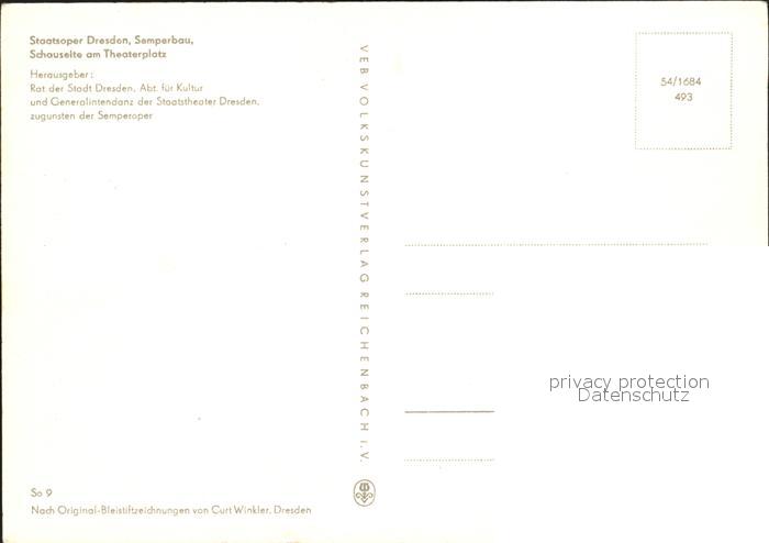 72382578 DRESDEN Elbe Staatsoper Semperbau Kuenstlerkarte nach Original-Bleistiftzeichnungen Curt Winkler postalisch nicht gelaufen Erhaltung siehe scans KatCode: 11110014262000