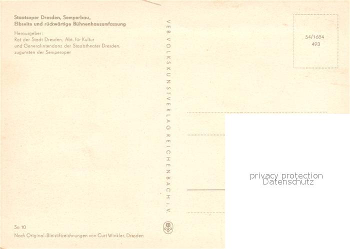 72985648 DRESDEN Elbe Staatsoper Semperbau nach Original Bleistiftzeichnungen von Curt Winkler Kuenstlerkarte postalisch nicht gelaufen Erhaltung siehe scans [FriedD77] KatCode: 11110014262000