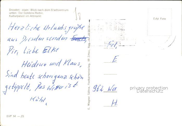 72332088 alte Postkarte DRESDEN Elbe Stadtzentrum Goldene Reiter Reiterstandbild Kulturpalast Altmarkt postalisch gelaufen Erhaltung siehe scans KatCode: 11110014262000