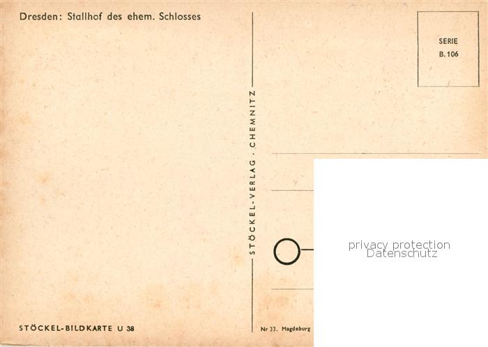 72986242 DRESDEN Elbe Stallhof des ehemaligen Schlosses Zeichnung Kuenstlerkarte Serie B 106 Stoeckel Bildkarte U 38 postalisch nicht gelaufen Erhaltung siehe scans [FriedD77] KatCode: 11110014262000