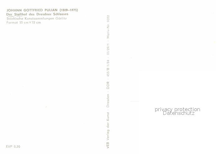 72631883 DRESDEN Elbe Stallhof Kuenstlerkarte Johann Gottfried Pulian postalisch nicht gelaufen Erhaltung siehe scans [LiesaD40] KatCode: 11110014262000