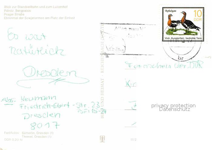 72913700 alte Postkarte DRESDEN Elbe Standseilbahn Luisenhof Pillnitz Bergpalais Prager-Strasse Ehrenmal Platz der Einhein postalisch gelaufen Erhaltung siehe scans [LiesaD40] KatCode: 11110014262000