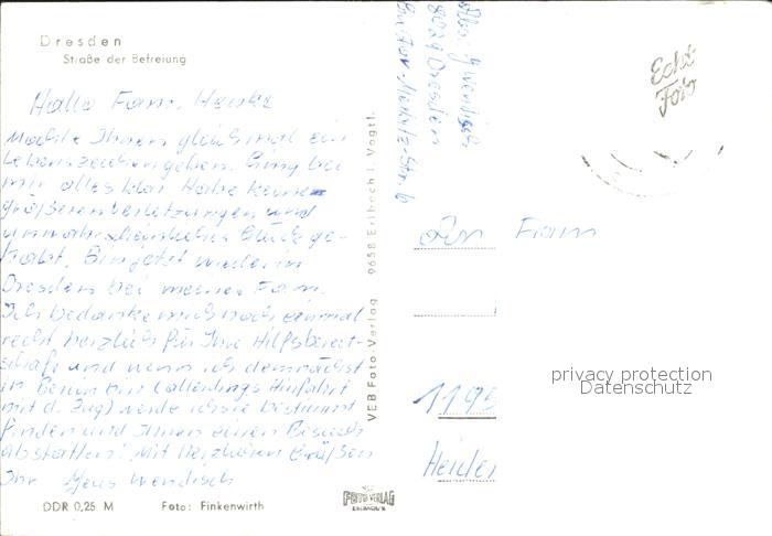 72068066 alte Postkarte DRESDEN Elbe Strasse der Befreiung postalisch gelaufen Erhaltung siehe scans KatCode: 11110014262000
