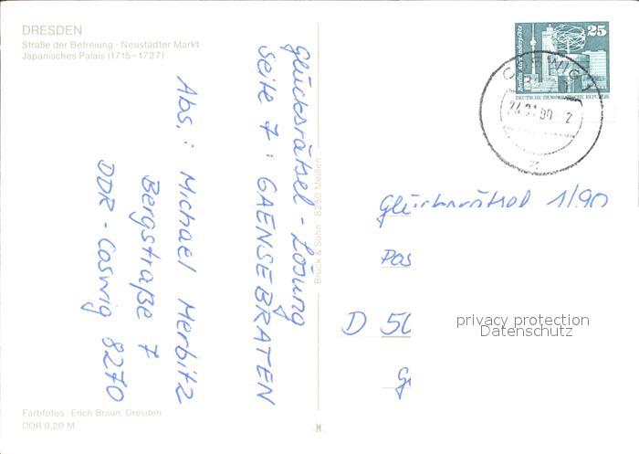 72379178 alte Postkarte DRESDEN Elbe Strasse der Befreiung Neustadter Markt Japanisches Palais postalisch gelaufen Erhaltung siehe scans KatCode: 11110014262000