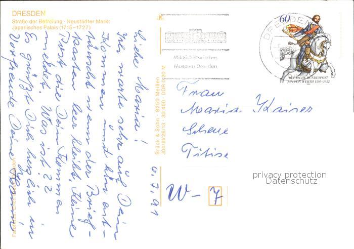 72352184 alte Postkarte DRESDEN Elbe Strasse der Befreiung Neustaedter Markt Japanisches Palais postalisch gelaufen Erhaltung siehe scans KatCode: 11110014262000