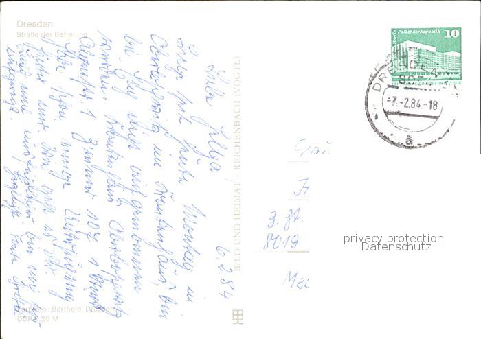 72406739 alte Postkarte DRESDEN Elbe Strasse der Befreiung Statue Denkmal postalisch gelaufen Erhaltung siehe scans KatCode: 11110014262000