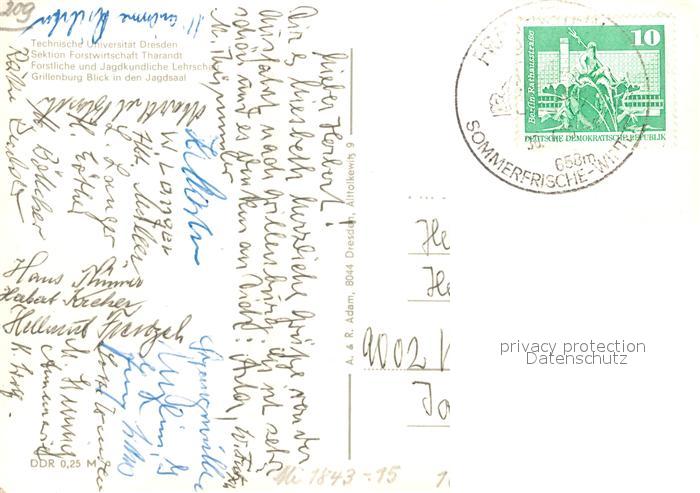 73108778 alte Postkarte DRESDEN Elbe Techn Universitaet Jagdkundliche Lehrschaft Grillenburg Jagdsaal postalisch gelaufen Erhaltung siehe scans [WerneD78] KatCode: 11110014262000