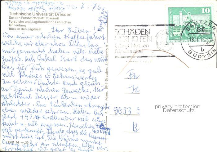 72366486 alte Postkarte DRESDEN Elbe Technische Universitaet Sektion Forstwirtschaft Tharandt Jagdsaal postalisch gelaufen Erhaltung siehe scans KatCode: 11110014262000