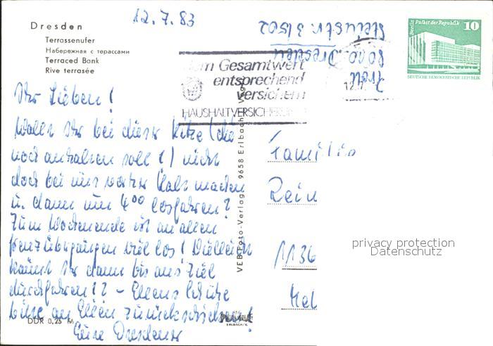 72273413 alte Postkarte DRESDEN Elbe Terrassenufer postalisch gelaufen Erhaltung siehe scans KatCode: 11110014262000