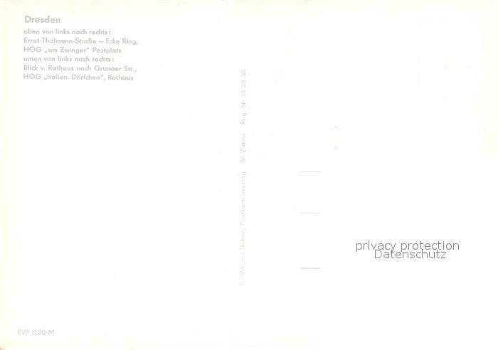 73014778 DRESDEN Elbe Thaelmann Strasse Ecke Ring HOG am Zwinger Postplatz Rathaus Grunaer Strasse HOG Italien Doerfchen Rathaus postalisch nicht gelaufen Erhaltung siehe scans [WerneD78] KatCode: 11110014262000