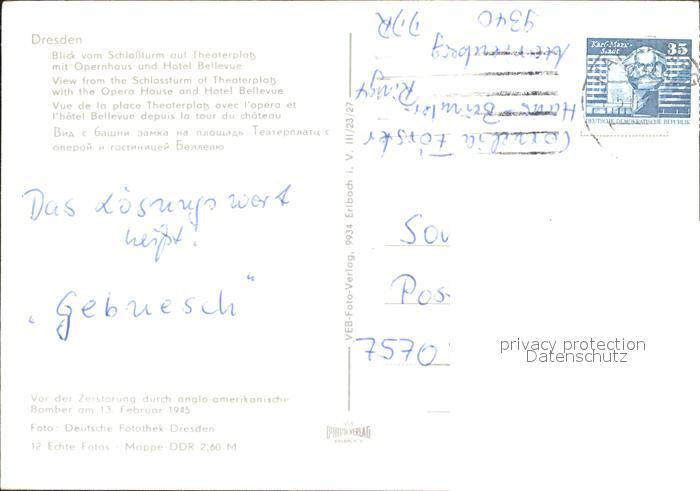 71970594 alte Postkarte DRESDEN Elbe Theaterplatz Opernhaus Hotel Bellevue postalisch gelaufen Erhaltung siehe scans KatCode: 11110014262000