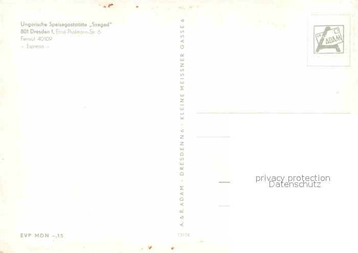 72849588 DRESDEN Elbe Ungarische Speisegaststaette Szegad postalisch nicht gelaufen Erhaltung siehe scans [KathaD81] KatCode: 11110014262000