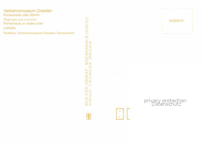 72655536 DRESDEN Elbe Verkehrsmuseum Portechaise Saenfte postalisch nicht gelaufen Erhaltung siehe scans [PaolaD17] KatCode: 11110014262000